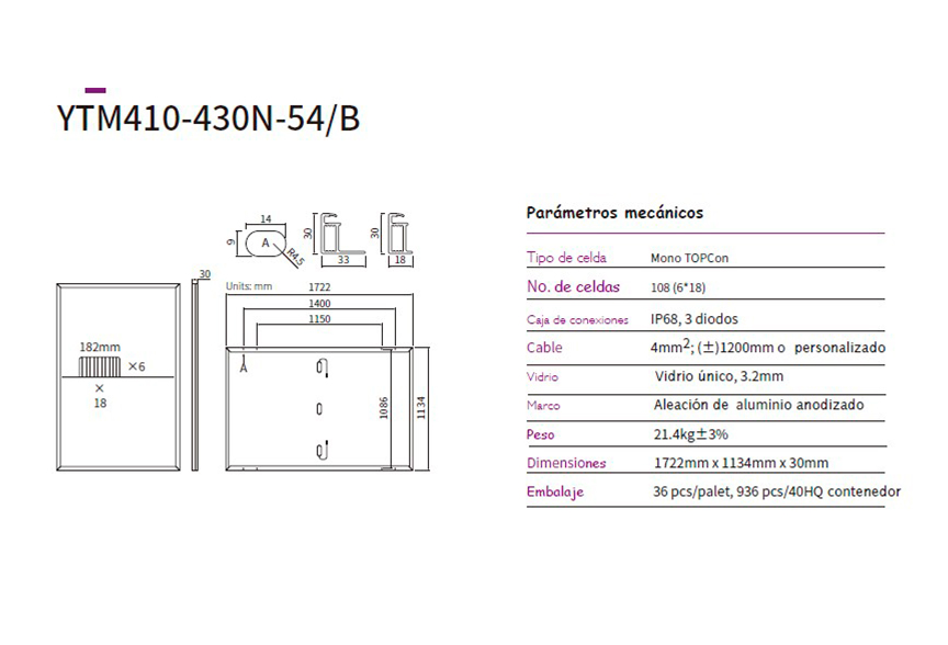 El módulo solar TOPCon Full Black 420W combina tecnología avanzada y diseño elegante para ofrecer una solución eficiente y estética en el ámbito de la energía renovable. Este panel fotovoltaico utiliza la innovadora tecnología TOPCon (Tunnel Oxide Passivated Contact), que maximiza la captación de energía solar y garantiza un rendimiento superior incluso en condiciones de baja irradiación. Con una potencia de 420W, es ideal para instalaciones residenciales y comerciales que buscan eficiencia energética en un formato compacto y atractivo. Su diseño full black no solo mejora su estética, integrándose de forma discreta en cualquier tejado, sino que también añade un toque de sofisticación a la instalación.